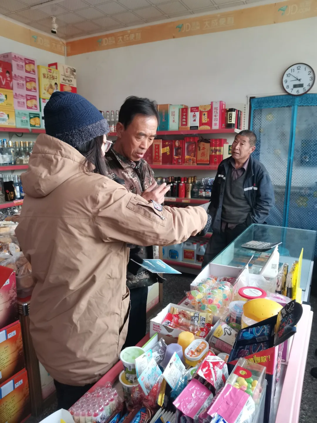 老豹子隊員王傑和郝耀華找地方掛橫幅去了, 我和大錘走進一家小超市,説了聲“您好”,老闆娘胳膊肘支在櫃枱上沒有説話。大錘拿出宣傳冊,繼續説“我們是……華北豹第一縣……不能打野生動物……”