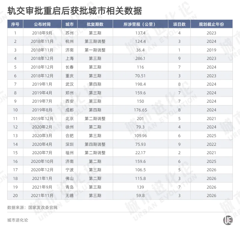 視線拉長,2018年7月,在暫停近一年後,國家發改委重啓城市軌道交通建設規劃審批。當時,同步提高的 “門檻”讓許多中小城市地鐵夢碎,但滿足條件的頭部城市,開通新線的腳步卻不減反增。