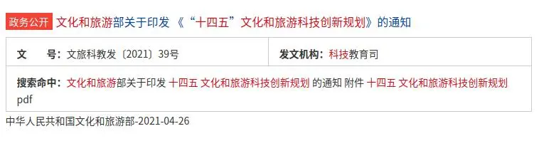 今年4月,文旅部印發《“十四五” 文化和旅遊科技創新規劃》明確,“十四五”時期,圍繞文化強國建設目標任務,全面推進科學技術深度融入文化和旅遊領域,以科技創新引領和支撐文化和旅遊發展,提高文化和旅遊生產要素水平,推動文化和旅遊更好融入新發展格局,實現高質量發展。