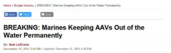 美國海軍陸戰隊15日突然宣佈,除非遇到緊急情況,將“永久性”禁止現役超過1000輛AAV兩棲突擊車下水——等等,它都不能下水了,還叫“兩棲突擊車”嗎?