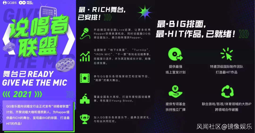 在這樣的發展態勢下,QQ音樂依託自身優勢及背後整個生態力量對中國説唱的扶持,也將觸角進一步伸向全國巡演、綜藝聯動、跨界合作、廠牌扶持等更多方面,本質上也是藉助產出差異化的內容,為用户提供持續豐富且持續創新的消費滿足。而在驅動行業探索差異化發展的過程中,新的羣體觸達也在加速華語説唱的影響力進一步擴大,最終反哺Rapper和説唱音樂的發展。