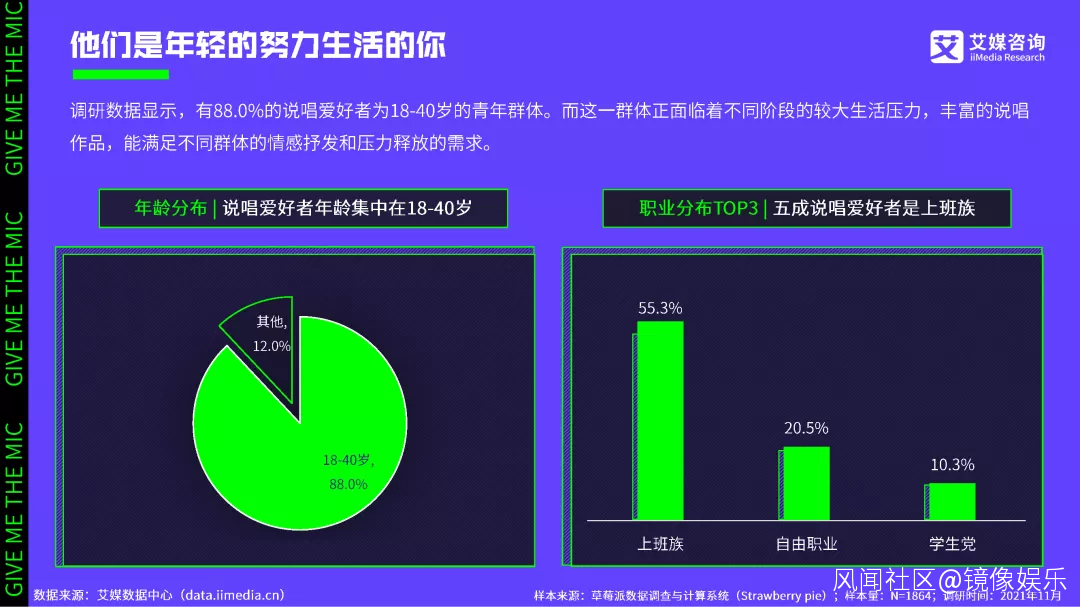 實際上,就任何一個產業來説,支撐其市場聲量和商業價值的必然是消費羣體。中國説唱在短時間內發展到如今的規模,也是一個持續對接消費羣體的過程。從這個角度來説,更瞭解説唱用户羣,就能夠更好地推動説唱產業的發展。