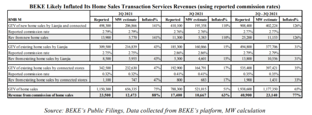 實際上,渾水認為實際收入誇大要比這個數據還多,因為他們認為貝殼實際佣金比例遠低於其向投資者披露的數據。