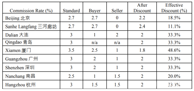 在渾水調查的9個城市中,對鏈家及關聯門店經紀人訪談後獲悉,9個城市平均折扣佣金率接近2%,廊坊三河市為2.4%,北京為2.2%,五個新一線城市和一個二線城市為2%,廈門的折扣佣金率低至1.8%。渾水相信,使用更激進談判策略的客户還能獲得更低的佣金率。