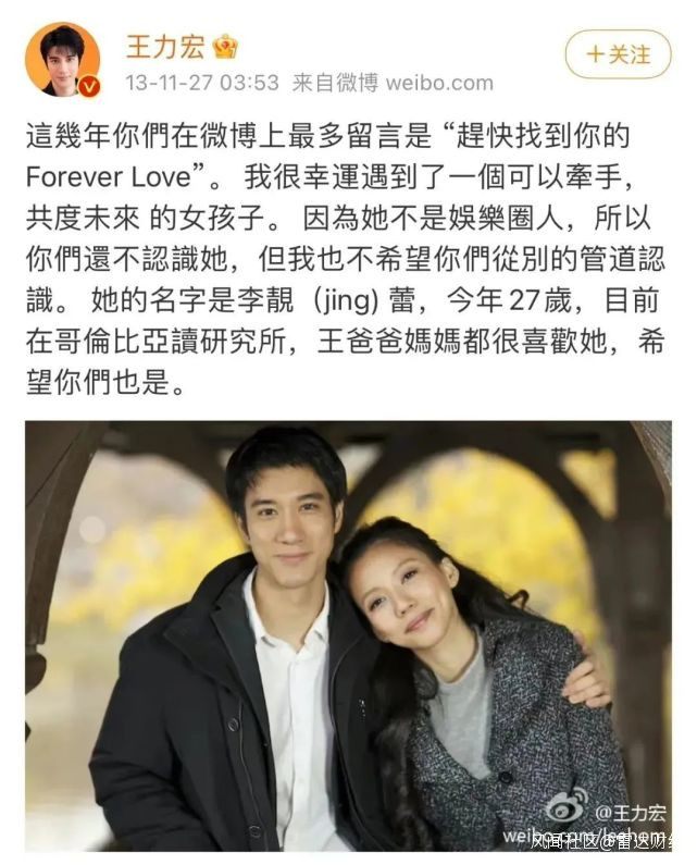官宣婚訊後,王力宏緊接着就在次月的濟南演唱會上,用《forever love》《唯一》《依然愛你》等情歌大方對台下的老婆示愛,並遭到歌迷集體催生。而王力宏也沒讓歌迷們失望,隨後的五年內,李靚蕾共為王力宏產下三個孩子。