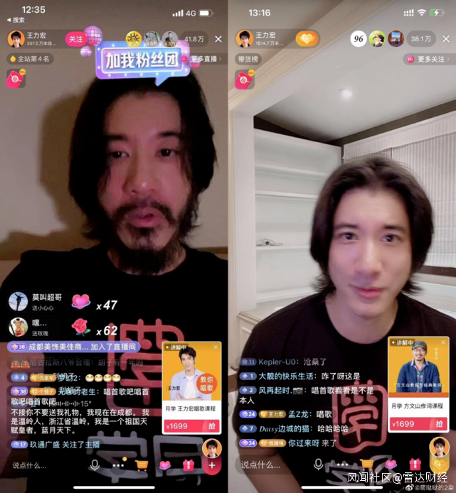 為推廣月學,王力宏想到了直播帶貨。根據王力宏本人公佈的數據,在7月這場時長71分鐘的直播中,一共賣課3450份,直播GMV為586.16萬元。不過根據其他機構統計,扣除未付款或退貨等情況,這場直播的GMV為122.84萬元。