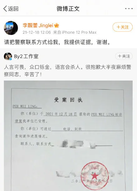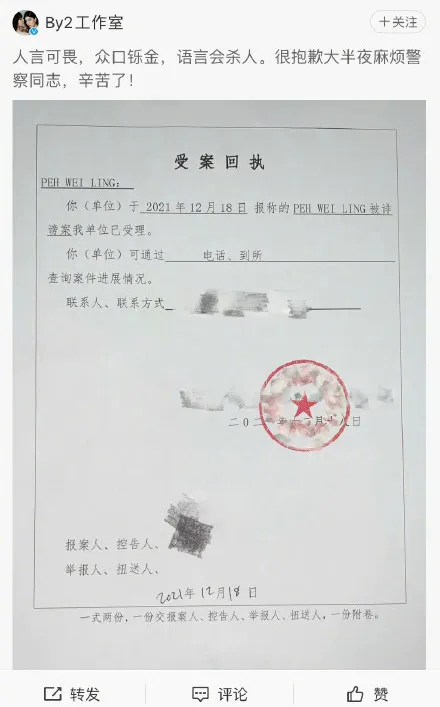 12月18日清晨4點,By2工作室發佈了警情回執單,稱已就此傳言報警。