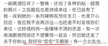 起因是長文裏提到關於王力宏出軌的部分內容,李靚蕾稱與王力宏出軌的其中一個女子在社交平台上發佈了關於王力宏的動態,還親切的稱呼其“宏宏”。