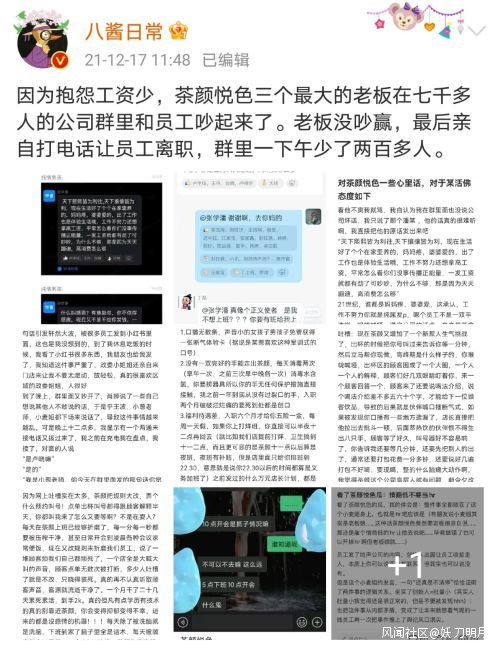 茶顏悦色員工抱怨工資太少(才一兩千),然後三個最大的老闆在七千多人的公司羣裏和員工吵起來了。