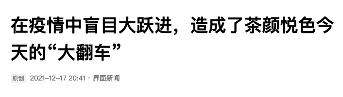 不只是一個茶顏悦色的問題,還有很多重高光時刻邁入至暗時刻的企業,而茶顏悦色看似是工資導致的全網負面形象被確立,實際則是本身也在崩潰邊緣。