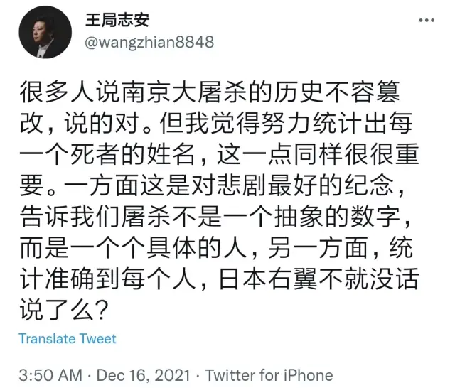 對於大屠殺這種極端惡劣的反人類事件,糾結於數字需要精確到個位是極不道德的,中國某些自由派和日本右翼就是如此,他們沒有悲憫、沒有反省、沒有懺悔,就是反覆拷問你割了幾刀,痛苦到何等程度。説白了,他們就是利用過去事統計的難以精確性,來否定非常嚴肅的歷史事件。