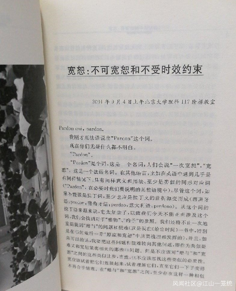 2001年,德里達第一次中國之行,在北大做了題為“寬恕”的主題報告。所謂“寬恕不可能被寬恕的才是寬恕”,一下子弄暈了在場一大撥學者。有一位老實人戰戰兢兢地提出疑問,問德里達“您所説的寬恕是否包括中國對日本的寬恕呢?”德里達沒有直接回答,balabala繞了一大圈,但給我留下的印象是,他認為中國人要對日本寬恕。