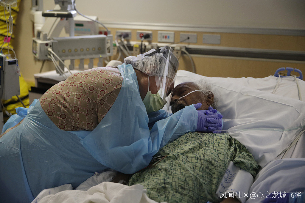 資料圖:一名美國老年人在病房與丈夫做臨終告別。攝影師表示,儘管徵得同意,但記錄時內心還是十分掙扎。