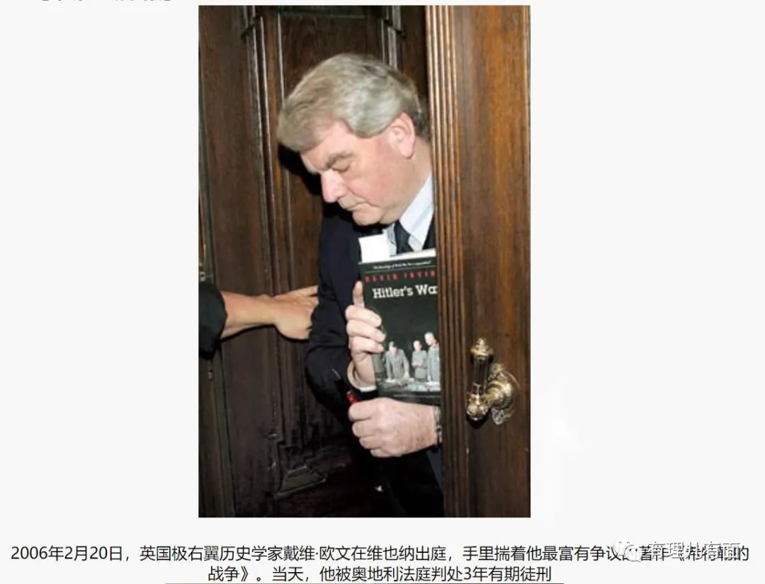 2006年,英國著名歷史學者戴利·歐文因質疑納粹集中營屠殺“猶太人的總人數”,被奧地利法庭判決3年監禁;2017年德國柏林法院判處公開否認大屠殺歷史的88歲女子哈佛貝克六個月監禁。