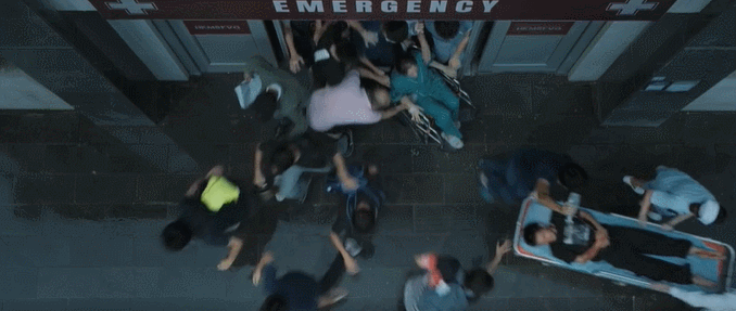 但在千鈞一髮之際,醫生在天花板倒塌時,出自本能地跑去救孕婦。