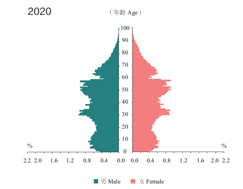 圖5:2020年中國人口結構的分佈圖