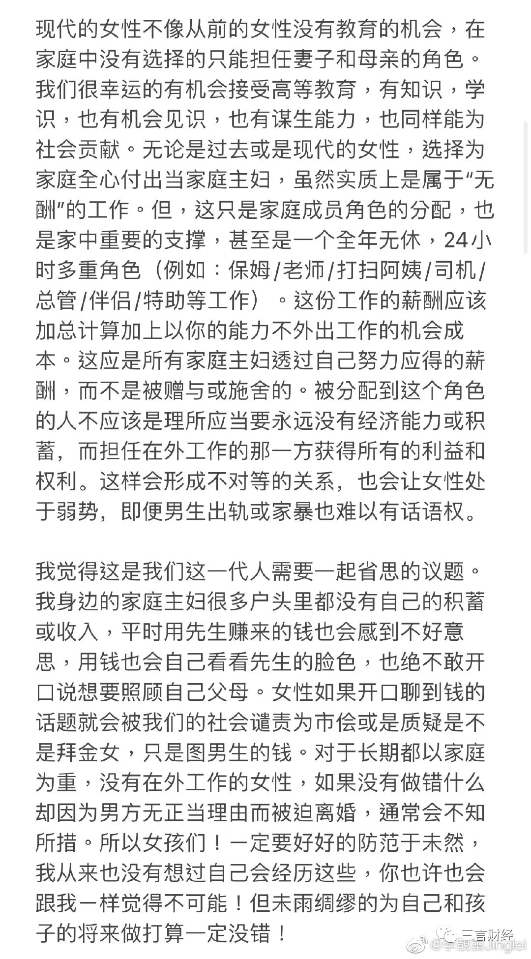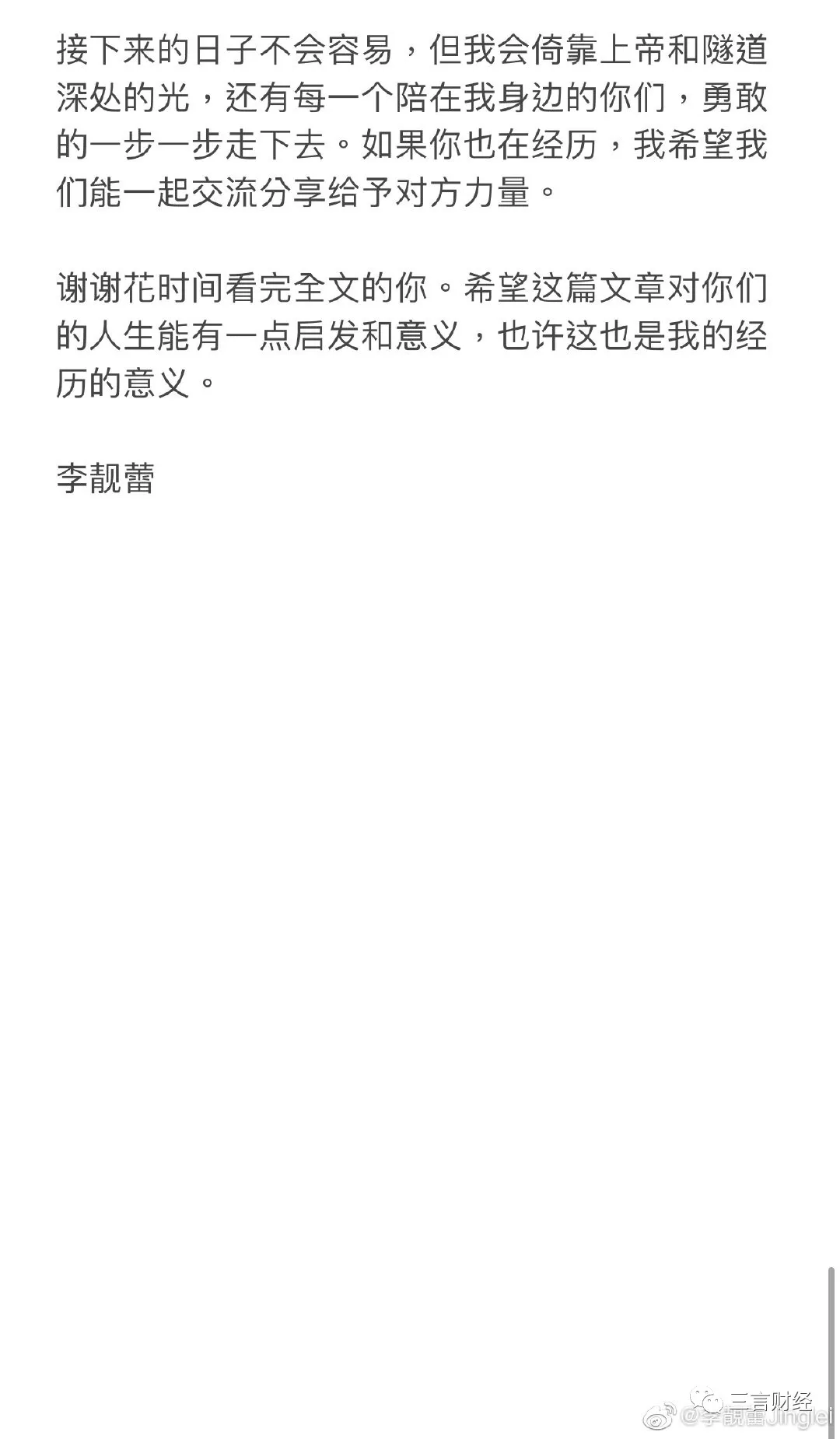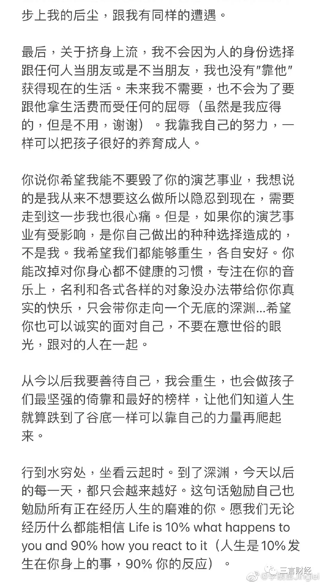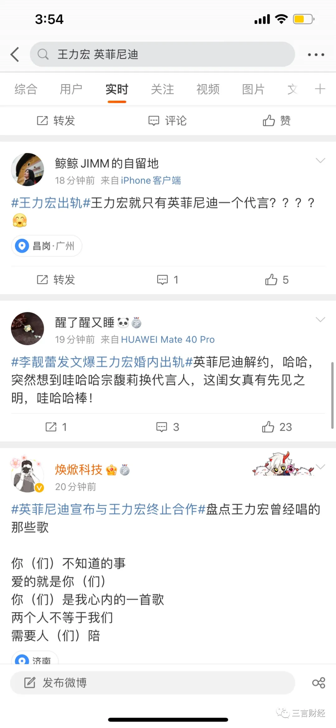 三言財經凌晨消息(文/迪麗冷巴) 小編起夜發現手機被各種push彈窗,《王力宏被前妻李靚蕾長文控訴出軌》,羣裏各種討論“他她、娃哈哈、xrx”等等。