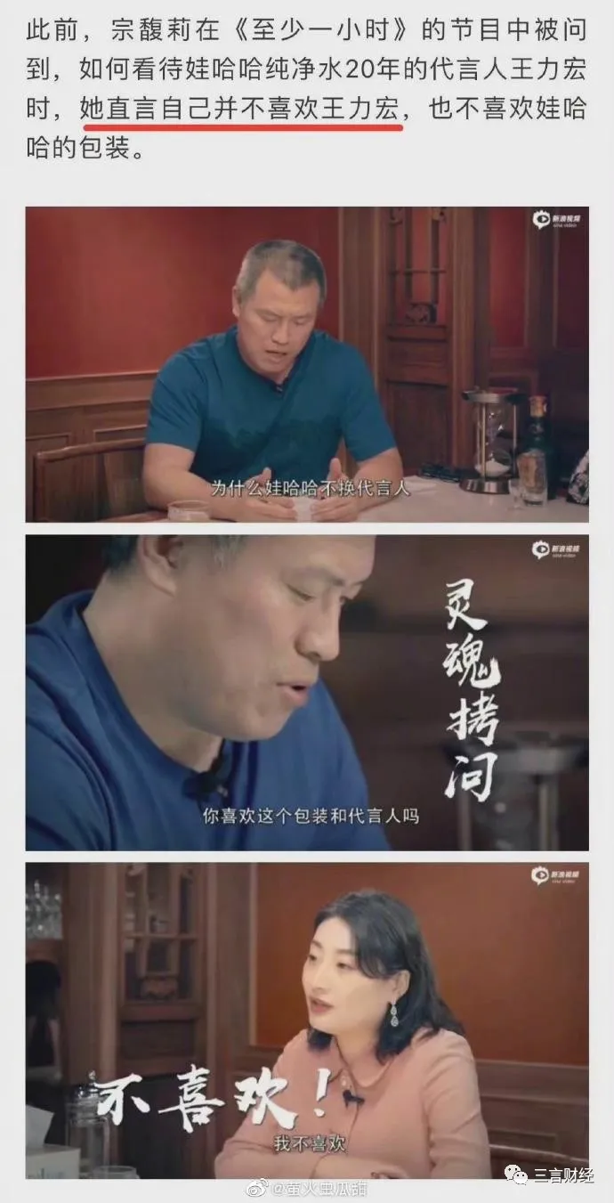 據瞭解,2018年,娃哈哈創始人宗慶後之女宗馥莉上任娃哈哈品牌公關部部長後不久,便更換產品代言人,她曾表示因為王力宏年紀大了,有審美疲勞。