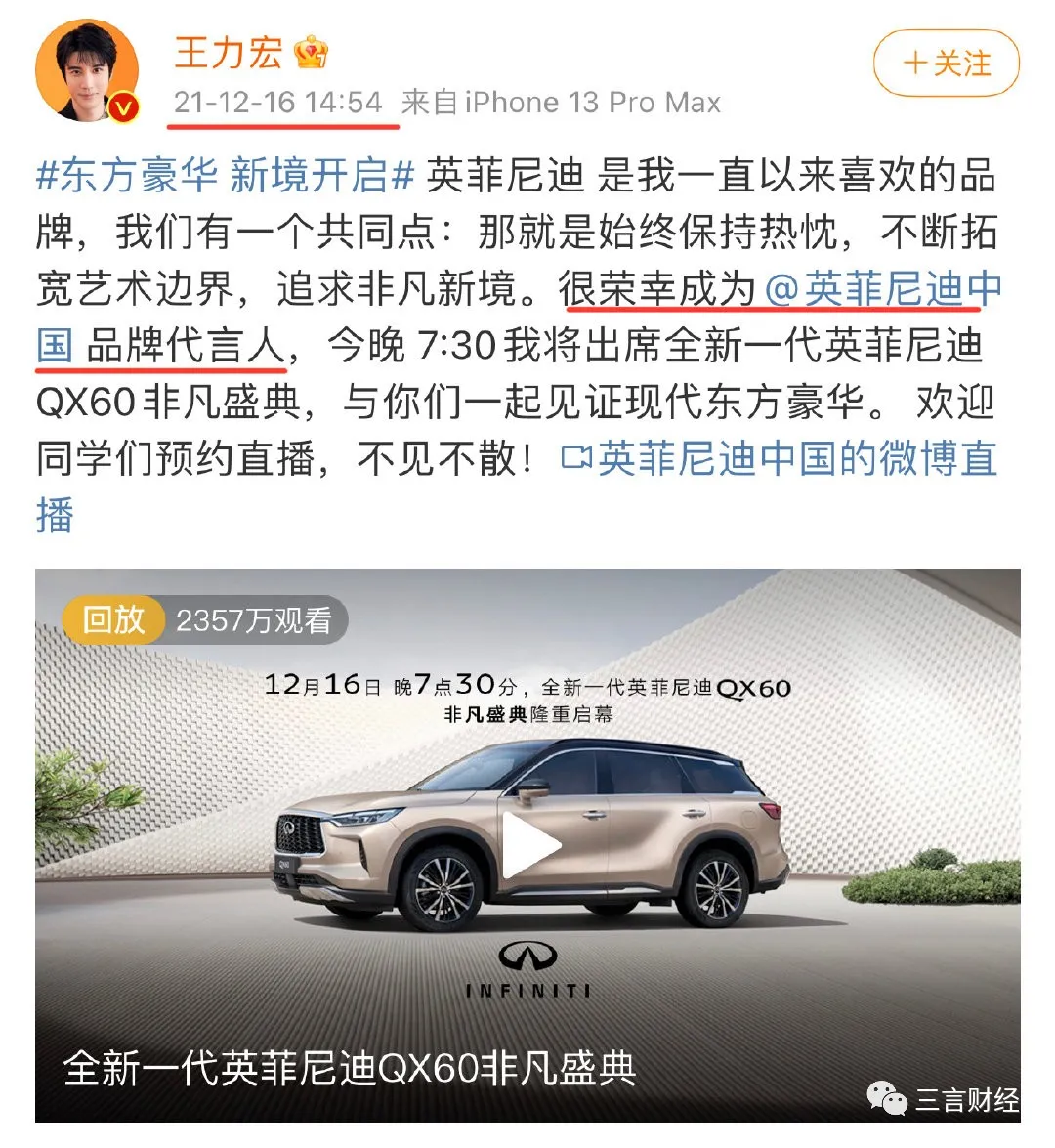 僅代言1天!王力宏被控訴出軌,英菲尼迪火速終止合作,首創日拋型代言_風聞