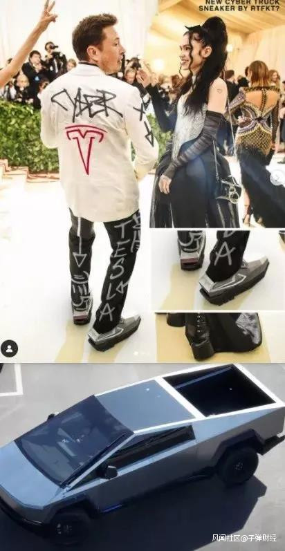 據瞭解,RTFKT第一次進入人們的視野,是在2020年2月。互聯網上出現的一張照片,照片上馬斯克穿着一雙誰都認不出牌子且非常酷的鞋出席活動,引發了人們的興趣。這款“賽博球鞋”酷似特斯拉旗下的電動皮卡“Cybertruck”,因此獲得很多人追捧。