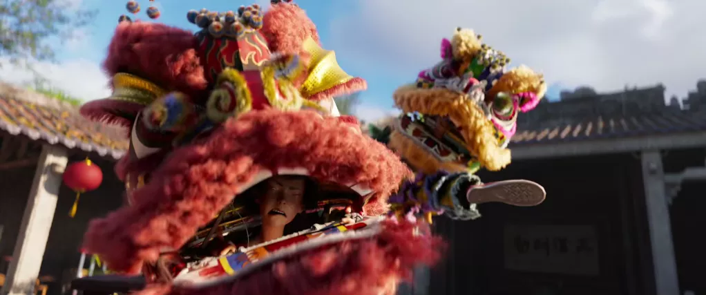 而且人物行動自然、舞獅動作戲也是利落颯爽,做到跟實物拍攝一樣以假亂真。