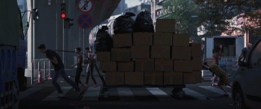而再次騎上單車的外賣小夥阿娟,被艱難的生活抽調走身體裏全部的能量,此時他只一心朝着送貨地點猛踩。