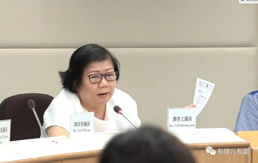 譚香文,1957年生於香港,籍貫廣東,一直自稱是香港“民主派”,現任香港黃大仙區議會龍星選區議員,也曾於2004年至2008年任香港立法會議員。不用説,她當時就是立法會里一隻亂港派議員。