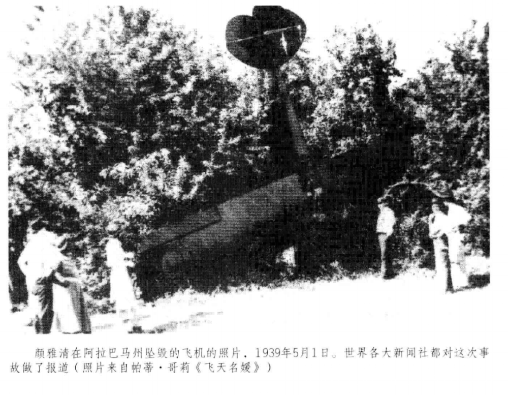 1939年5月1日,顏雅清駕駛的抗戰募捐飛機在美國亞拉巴馬州墜毀後的樣子。