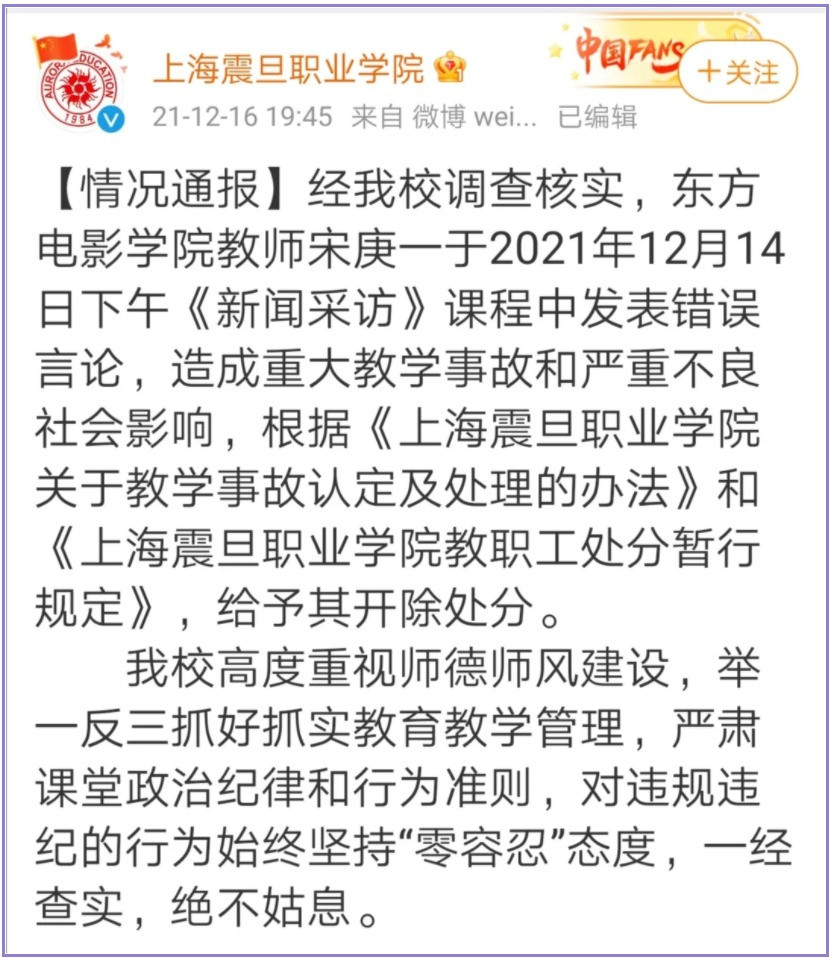 最近,上海震旦職業學院東方電影學院的宋老師講述南京大屠殺的授課內容被她的學生舉報了,隨即被學校開除,此事引起了熱議。網上雙方不斷撕裂、爭論,到現在還沒有平息。