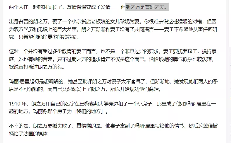 現在,一有人提到居里夫人偉大,就會有人跳出來説她其實是個蕩婦,曾經“知三當三”。