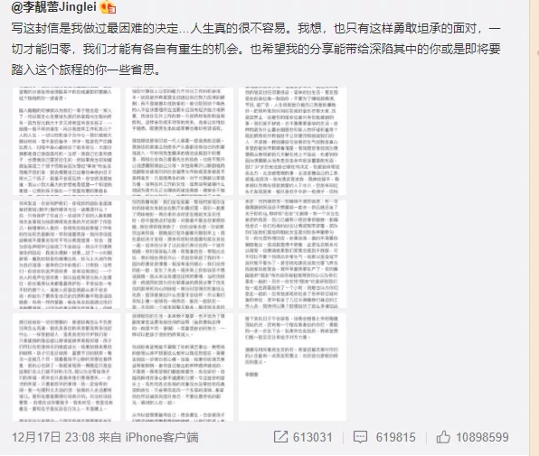 有人説李靚蕾的“信”寫得充滿銅臭味,每個字都寫着**“錢沒給夠”,**所以她是壞人。