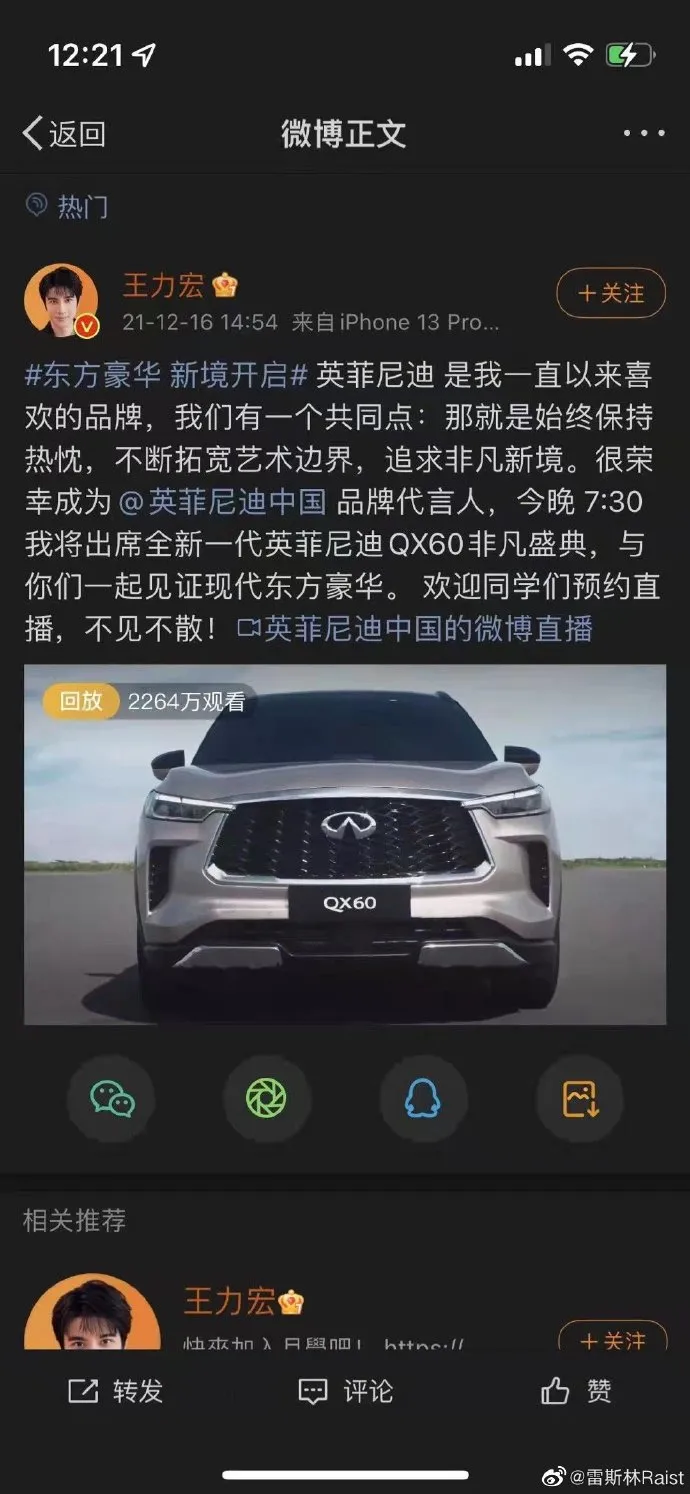 英菲尼迪16號他們剛剛官宣王力宏代言: