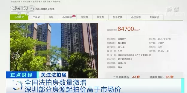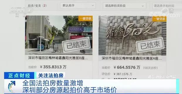 全國法拍房數量激增 深圳部分房源起拍價高於市場價