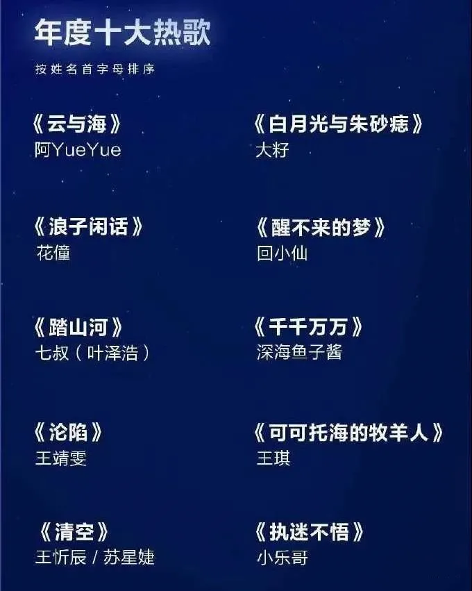 騰訊音樂娛樂集團(TME)評出的2021年度十大熱歌