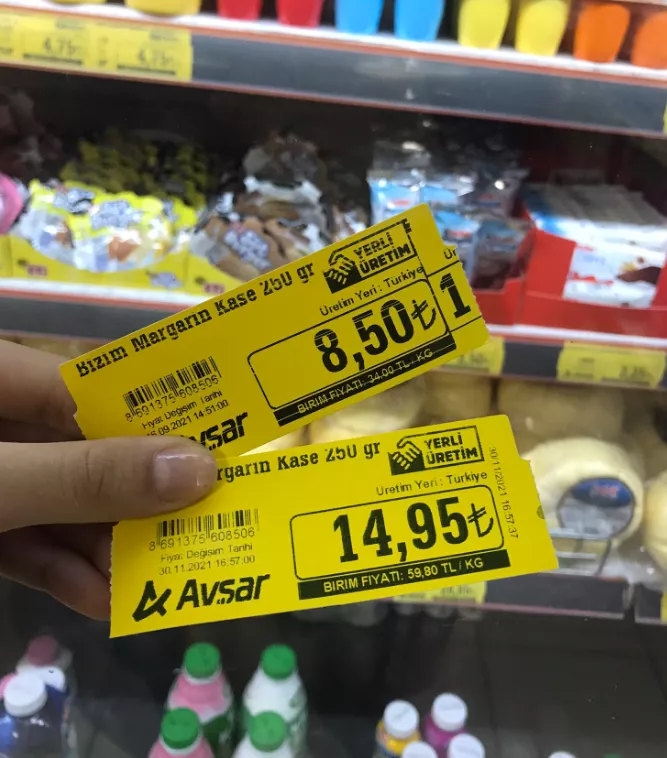 土耳其超市員工在社交媒體上發佈漲價信息,展示產品的前後標籤