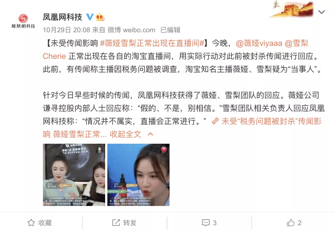 網傳截圖更是顯示,薇婭方除了自查自糾之外還十分配合。