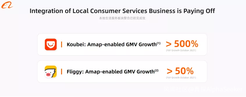 本地生活服務板塊的治理同樣如此,經過對高德、餓了麼、飛豬的整合,本地生活平台和人地關係平台在板塊內形成了資源互補,目前整合已初見成效。