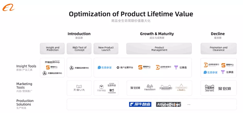 除了消費者端,阿里巴巴“全方位”級的服務能力在商家端亦有體現。阿里系生態有着完整的產品體系和基礎設施,能在各個經營環節(如營銷、零售、支付、物流、金融),以及品牌的各個成長階段給予支持。