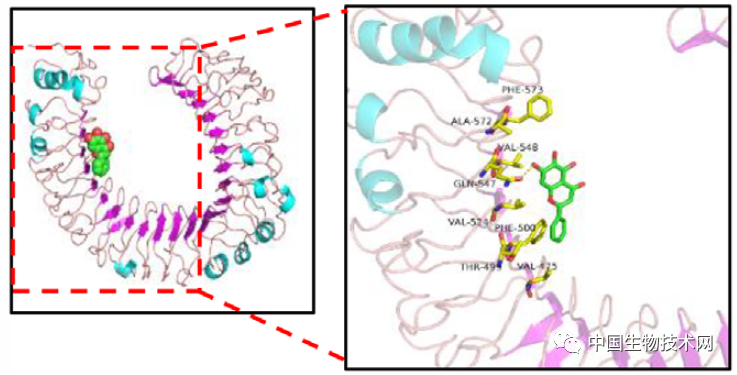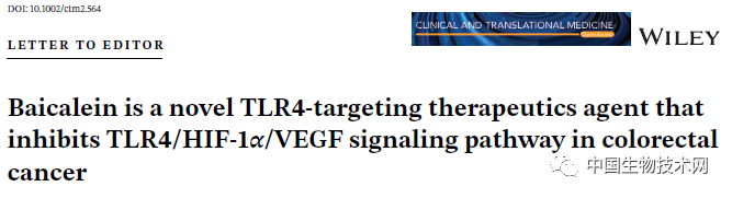 該研究結果顯示,黃芩素可以直接與TLR4蛋白穩定結合,中斷複合物(LPS-TLR4/MD-2)並抑制了TLR4的活性;並且,黃芩素以TLR4劑量依賴性方式降低結直腸癌細胞中HIF-1α和VEGF的表達,並通過TLR4/HIF-1α/VEGF軸,抑制小鼠模型中結直腸癌細胞生長、血管生成以及癌症轉移。