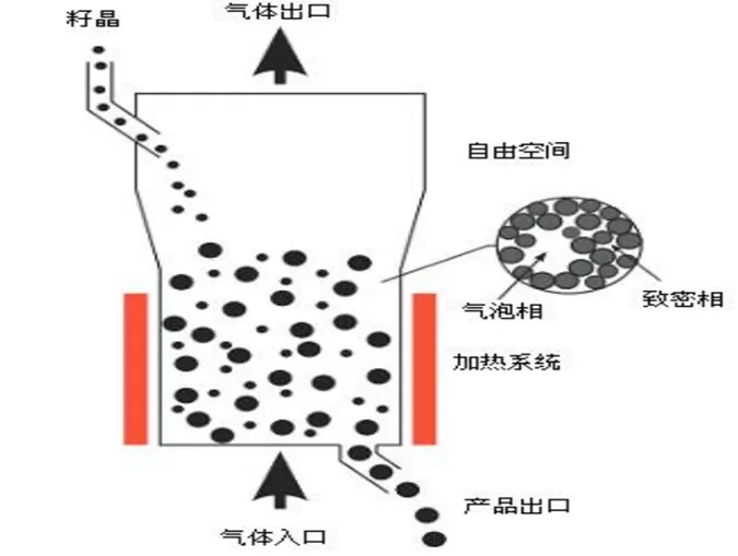 此時,在流化牀另外一個端口持續加入仔晶,小顆粒硅便開始附着在仔晶上,持續過程使得仔晶變大,最後從出口排除。這個過程有點像我們小時候玩滾雪球的遊戲,越滾越大。