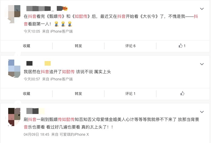 不少網友表示:“有些劇情實在是太拖拉了,一集一集的看,倍速看都覺得是在消耗時間,還不如看剪輯的。”,甚至有網友發表聲明,“我是在抖音上看完《甄嬛傳》《如懿傳》的。”