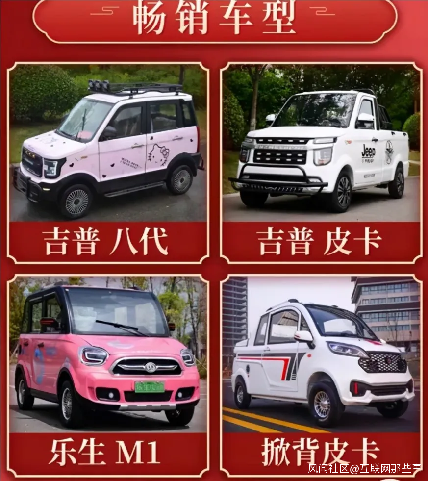 但更多的人,依舊買不起。四輪低速電動車,也就是我們如今無比熟悉的“老頭樂”,藉機在差錢買車,沒地兒加油的廣大農村地區正式萌芽。