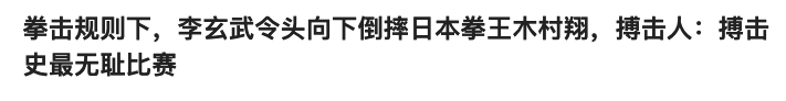 中國職業拳擊M23戰隊官方賬號:木村翔在一場表演賽中被搏擊選手李玄武抱摔,該比賽為拳擊規則,事後木村翔憤而退賽。簡直在羞辱拳擊運動!
