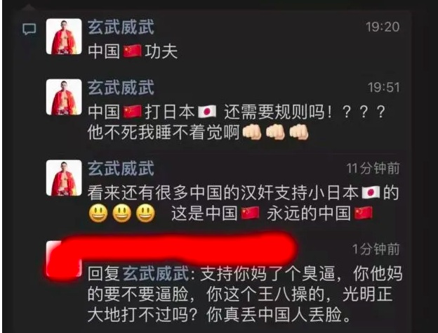 在賽後的發言中,玄武稱他是一名自由搏擊選手,比賽打得不好,習慣性使出了掃踢、抱摔,但他仍打敗了日本人,為鄒市明報仇了云云。