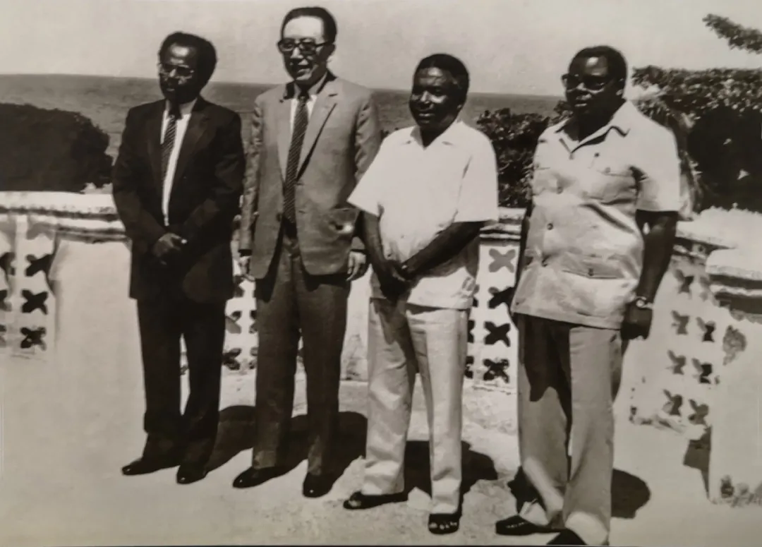 • 1984年5月,坦桑尼亞總統姆維尼(右二)會見到訪的吳學謙國務委員兼外長。