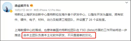 特斯拉方面更是不斷釋放信息,稱要助攻中國團隊自主研發,要在中國組建完整產業鏈,特斯拉在中國要實現100% made in China。