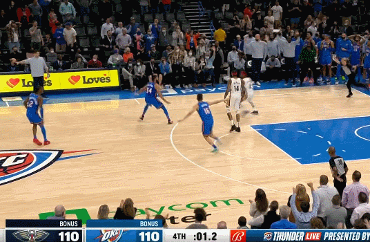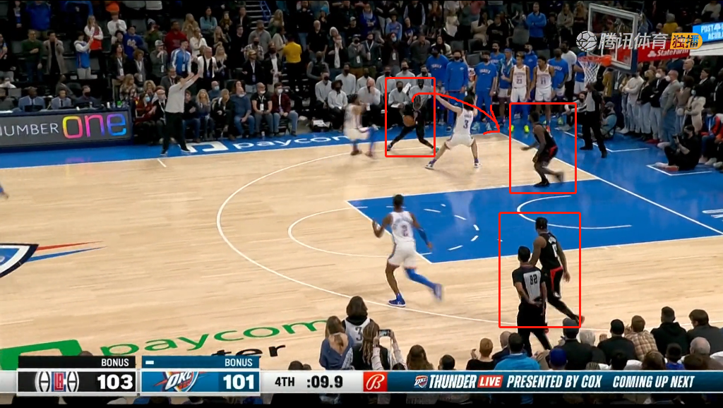 雷吉直接在邊角被包夾,順勢傳給底線進來的温斯洛,亞歷山大犯規。對於雷霆而言,温斯洛是他們最願意給罰球的快船球員。