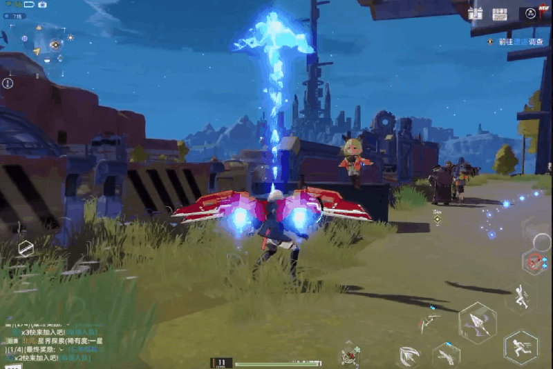 解鎖了載具系統之後,整個探索過程就更爽快了。《幻塔》中載具的速度非常快,經常跑出“人到了,場景還沒加載完”的效果。使用沒什麼限制,轉向靈活,操縱起來也很簡單——左手推前進,右手轉動鏡頭就行。