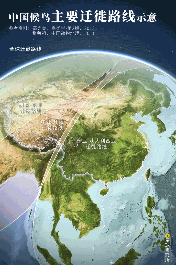 (中國地區的候鳥遷徙路線示意,製圖@陳志浩/星球研究所)
