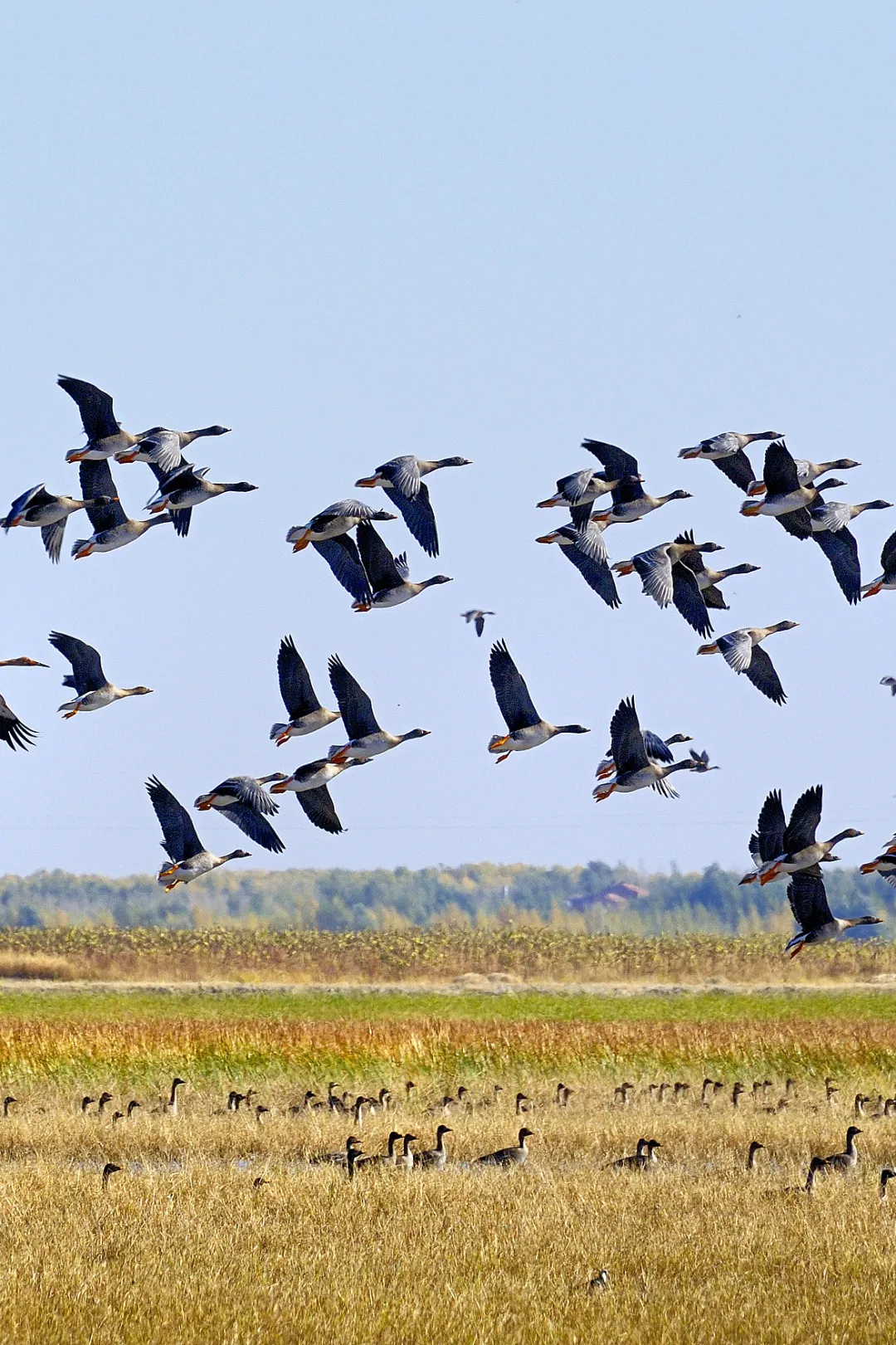 (請左右滑動觀看;左右依次是中華秋沙鴨Mergus squamatus、豆雁Anser fabalis,攝影師@馮江、視覺中國)